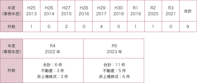 平成25年事務年度から令和3年事務年度までは合計で9件だったものが、令和4年事務年度 6件、令和5年事務年度 11件と増加しています。これは令和4年7月1日付で国税局等に示された事務運営指針(総則6項の適用基準や運営体制)の影響と思われます。