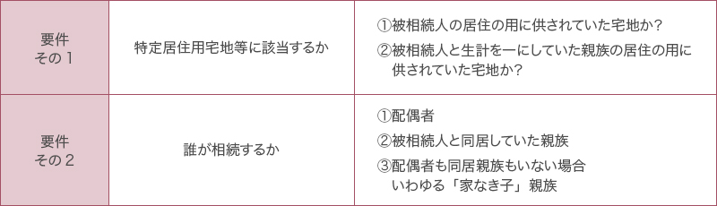 宅地の評価額の80%が減額できるという納税者にかなり有利な特例ですので、その適用要件はしっかりと確認して下さい。例えば、「同居していた」とは、住民票ではなく実態で判断するのがよろしいかと思います。実家に住民票を残したままの被相続人の子供が平日は賃貸住宅に住んでいて週末実家に戻って親の介護をしていたという場合は同居とされないと思われます。
